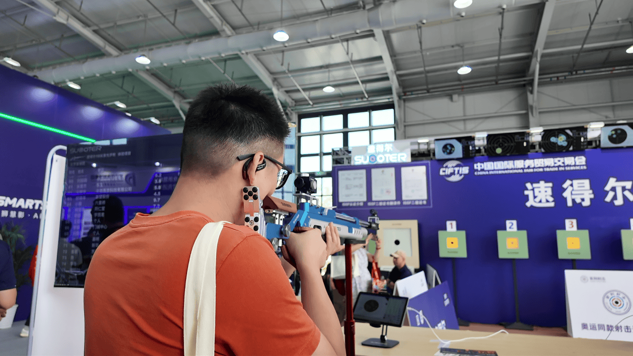 踏入速得尔激光射击体验赛现场,人们正在有序排队等候,体验者们轻搭手指扣动扳机后,电子屏幕上便能清晰显示所击中的环数,很是“酷炫带感”。速得尔相关负责人孟国存表示,激光射击避免了实弹射击的危险性,现在的应用场景主要是青少年体育运动,对于中小学生来说,能够提高他们的专注力,也能助益于体育人才的培训和挖掘。