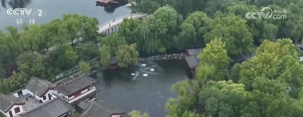央视网消息:近期雨水充沛,位于山东济南章丘区的百脉泉迎来了丰水期,泉水群中的墨泉汹涌喷发、水势浩大,吸引了大量游客前来拍照打卡。