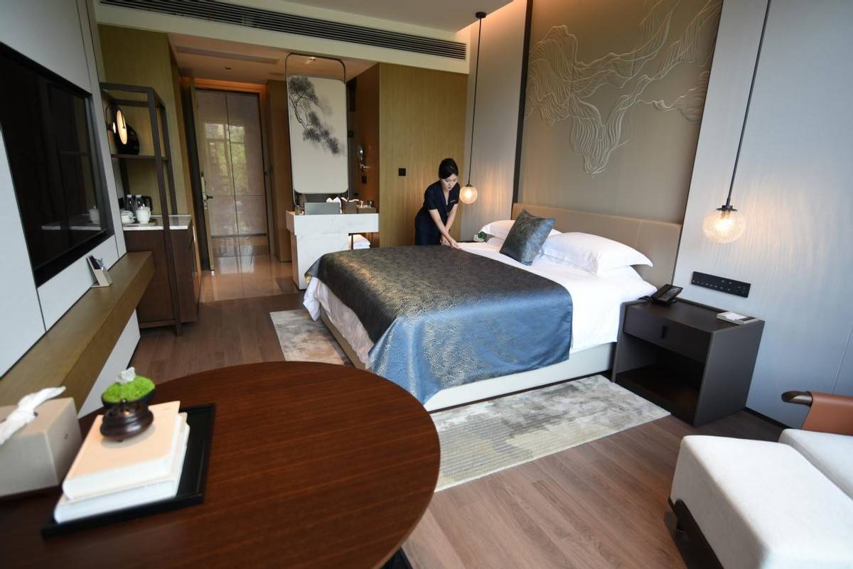 宾馆拥有客房283间,独栋别墅2栋,各类会议室13个。客房设计风格简约而不失优雅,每一间都经过精心布置,营造出温馨舒适的居住氛围。馆内还配备了150平米左右的健身房,包含划船机、跑步机等相应健身器材10组,以及3道25米半程恒温泳池,为宾客提供了便捷、舒适的高品质服务。