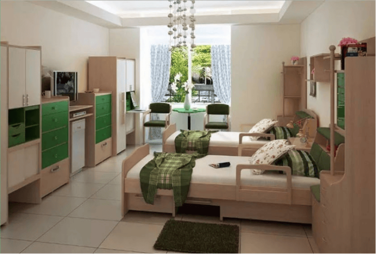 设施特色:双人间、四人间、五人间、两室一厅(最多可住4人),所有房间配备独立卫浴、空调,配备数字化生活便捷服务;各类娱乐休闲区、安馨大舞台、阳光露台。