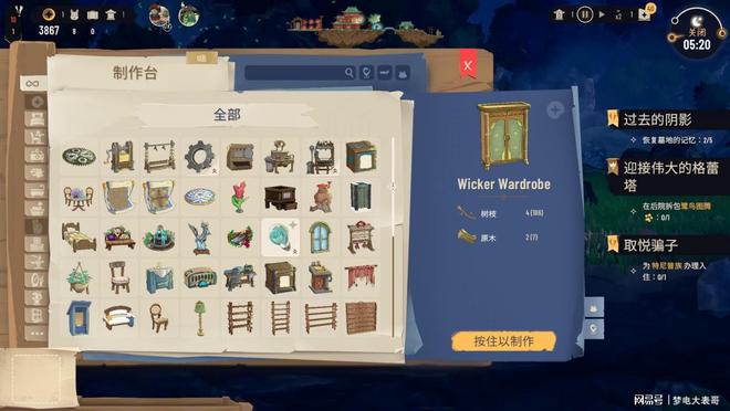 当然放置物品也需要你去进行布局,旋转对齐方向等等。而制作台也是他们带来的,在安放好之后就可以制作想要的物品了,后期也可以通过召唤商船来购买新的资源道具等等。