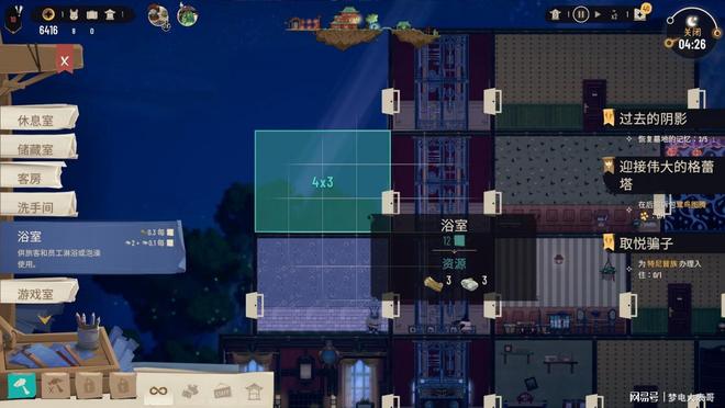 作为旅店除了制作建造设施布局的规划,还有就是收入来源了,和其他旅店不同,旅店的客人是夜间活动白天休息的,正式营业后你需要提供一些娱乐设施以及用餐,全都准备好以后可以在前台正式开始营业,为旅客办理入住,以及退房手续,注意不要让旅客等待时间过场损失收入而且还会影响旅店评分,退房时会显示旅客的各项服务评星并获得收入。
