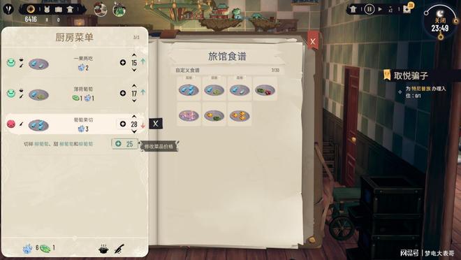 整体来说该游戏玩法十分丰富,随着长时间游戏显露的不足也很明显,首先就是中文翻译之下,某些翻译名称还是英文的状态,并不影响游玩,然后就是旅客信息,在一开始就告诉你旅客的喜好,基本按照喜好去配菜就可以了。