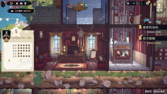 之前的很多工作都是,后期房间设施多了就显得比较繁琐了,而且并不能去批量执行,只能一个一个去点,右上角的叹号会提示一些工作,不过清洁等工作不会提醒,所以还是要自己去下达清洁任务指令保证卫生。