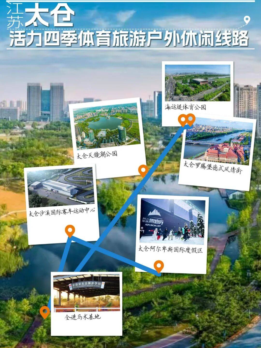 线公里。位于海运堤的罗腾堡德式风情街,在江南水乡复刻了一座德国中世纪古镇,原汁原味的德式生活场景在这里随处可见。拜仁足球体验馆是每一位足球爱好者不会错过的打卡地,科技感满满的数字化竞技乐园万代南梦宫VS CHALLENGE则给你唤回童年的体验。宁静优美的天镜湖公园,是市民日常休闲健身的好去处,这片占地5万多平方米的天地里,配备了设施齐全、种类丰富的健身设施,其中2500平米的专业篮球公园是篮球爱好者的必经之地。充满欧式风情的阿尔卑斯国际度假区以及充满激情的全进马术基地和沙溪国际赛车运动中心,完美融合冰雪运动、马术运动、卡丁车运动等丰富的体旅资源……总有一款能满足你的需求。
