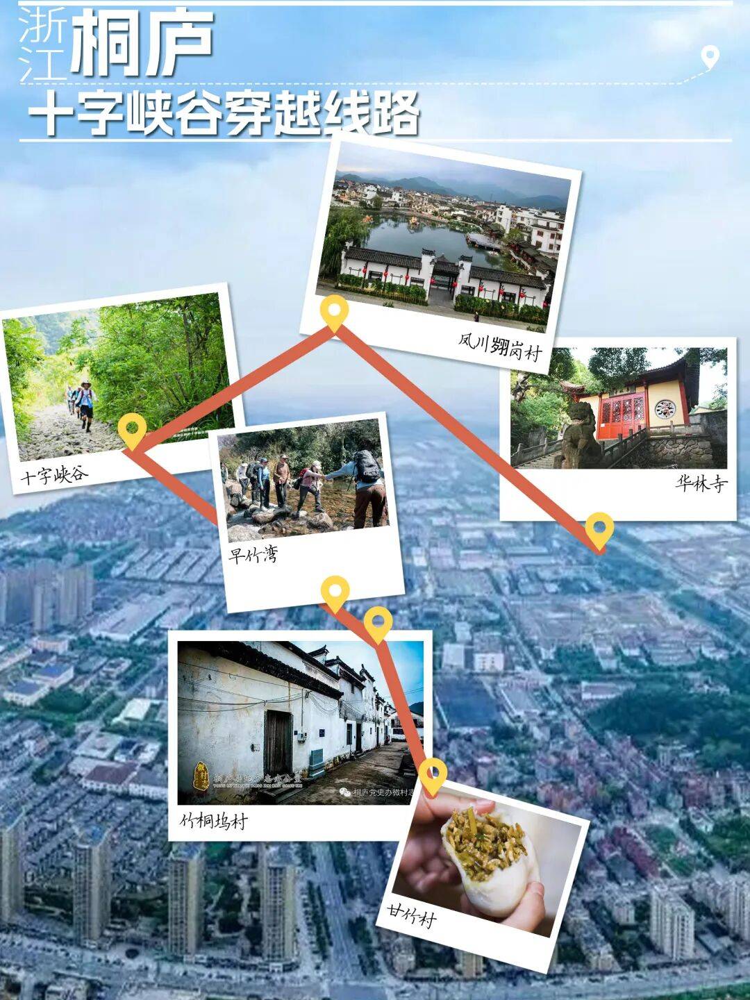 线公里。十字峡谷因岩壁上方有一处被水流冲刷出的“十字”痕迹而得名。峡谷两岸山峦耸立,沿途林木葱郁,飞流直下的小源溪瀑布、清澈见底的山涧水潭,共同交织成一处自然生态与古村人文的秘境。起点翙岗古村还保留明清建筑,可以感受大明开国帝师刘伯温隐居地的悠悠古韵;终点甘竹村则可品尝地道桐庐米粿与酒酿,酣畅淋漓的运动之后又满足了口腹之欲,岂不快哉!