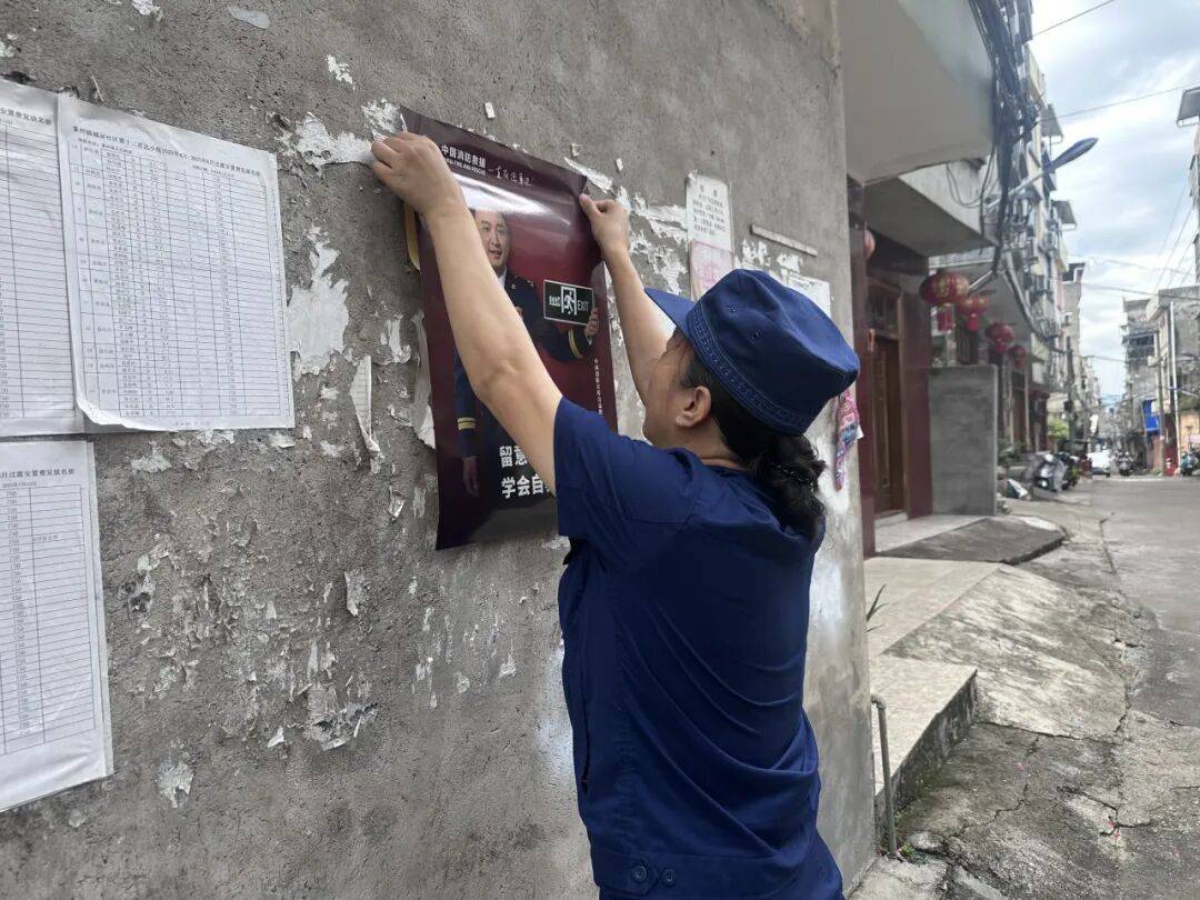同时,消防宣传员还帮助村民检查电气线路、厨房用火用电情况,及时排除安全隐患,并且在村口、村宣传栏等醒目位置张贴消防宣传海报,让过往群众都能学习消防知识,提高消防安全意识。