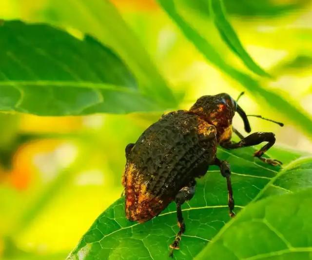 又比如臭椿沟眶象,成虫啃叶、幼虫蛀枝,一家老小齐上阵,像“小妖啃食妖王肉身”一样,让臭椿始终长不“成精”。